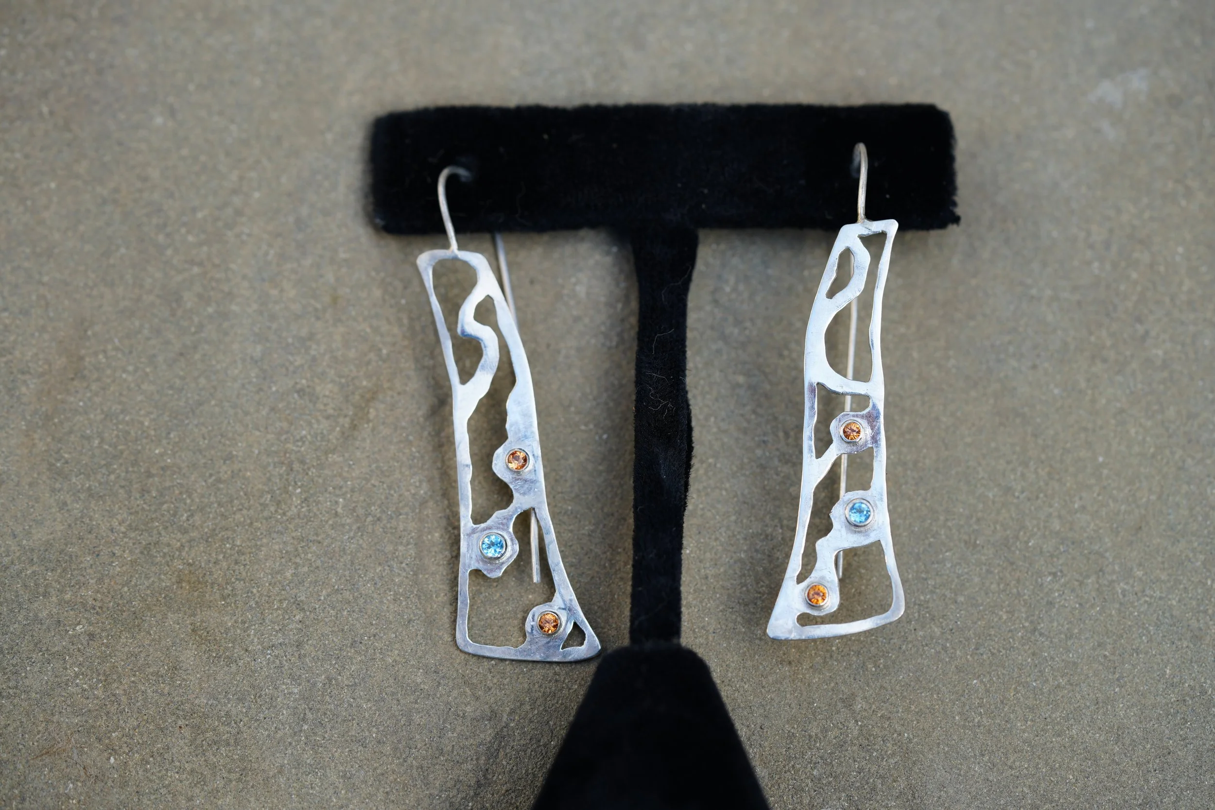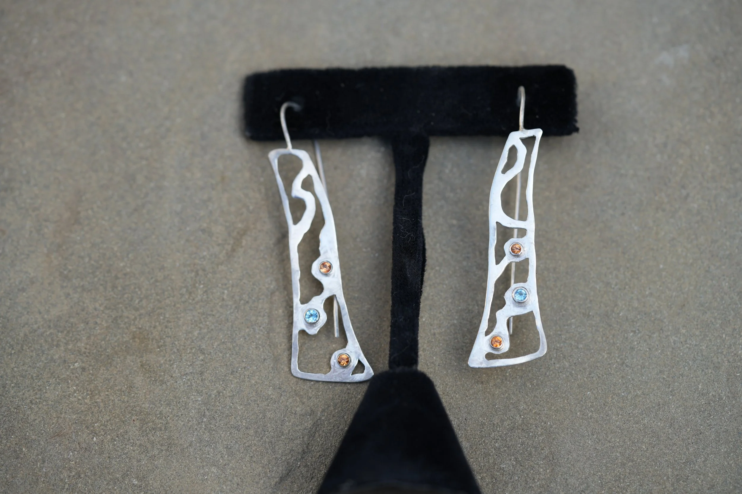 Categories: All sets bracelets earrings necklaces rings All | sets | bracelets | earrings | necklaces | rings | Sunburst! $400.00 Lake Ripples $180.00 5 stone sleekers $280.00 Circle of Stones $230.00 Tripple Threat $350.00 5 stone earrings $380.00 Chrysoberyl Bold $220.00 Origen Story: "Where gems come from". $420.00 Tahiti $425.00 Long Sleek $180.00 Orange Sapphire fun! $180.00 Pendant with Ruby. $400.00 Blast Red! $280.00 The "Perfect Waves" - (necklace and earrings) set. $500.00 Tropical (necklace and earring) set. $600.00 "Scaffolding" necklace and earrings set. $650.00 Unisex 3 quartz ring: "past, present, and future". $150.00 Wavy Set Bracelet $1,300.00 Hommage to Concretions $350.00 Men's Tiger Stripe Ring $110.00 Confluence Earrings $145.00 Golden Road $460.00 Scaffolding Earrings $180.00 Free Shipping over $500